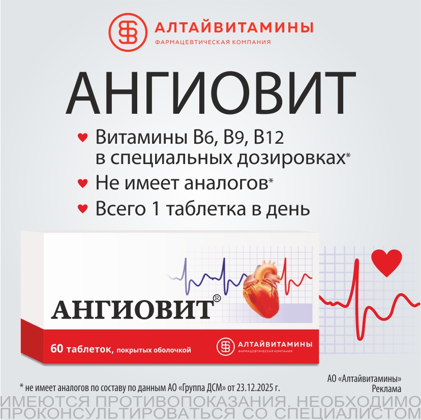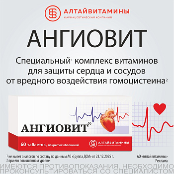 «Ангиовит» рекомендован Министерством здравоохранения РФ для применения в кардиологической и терапевтической практике.6