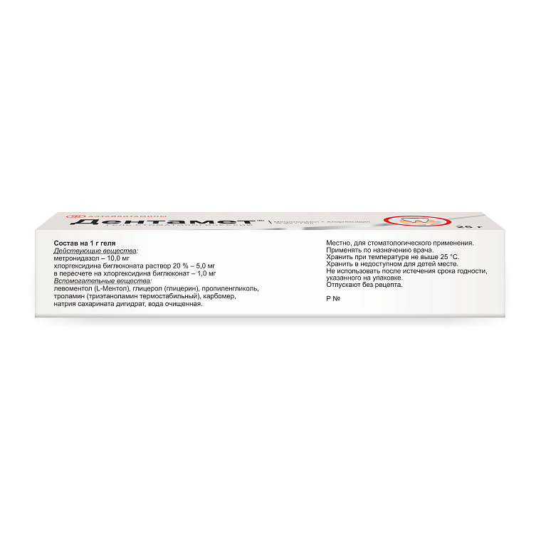 При воспалении десен (гингивите) Препарат Дентамет следует наносить на область десен тонким слоем пальцем или при помощи ватной палочки 2 раза в день. После нанесения геля следует воздержаться от питья и приема пищи в течение 30 мин. Смывать гель не рекомендуется. Длительность курса лечения составляет в среднем 7–10 дней. При пародонтите После снятия зубных отложений, пародонтальные карманы обрабатываются препаратом Дентамет, и производится его нанесение на область десен. Препарат Дентамет должен оставаться в месте нанесения в течение 30 минут. Количество процедур зависит от тяжести заболевания. В дальнейшем нанесение геля Вы можете проводить самостоятельно. Препарат Дентамет следует наносить на область десен 2 раза в день в течение 7–10 дней. При афтозном стоматите Препарат Дентамет следует наносить на пораженную область слизистой оболочки полости рта 2 раза в день в течение 7–10 дней. Для профилактики обострений хронического гингивита и пародонтита Препарат Дентамет следует наносить на область десен 2 раза в день в течение 7–10 дней. Профилактические курсы лечения проводятся 2–3 раза в год. Для профилактики постэкстрационного альвеолита После удаления зуба лунка обрабатывается препаратом Дентамет, затем препарат следует применять 2–3 раза в день в течение 7–10 дней.