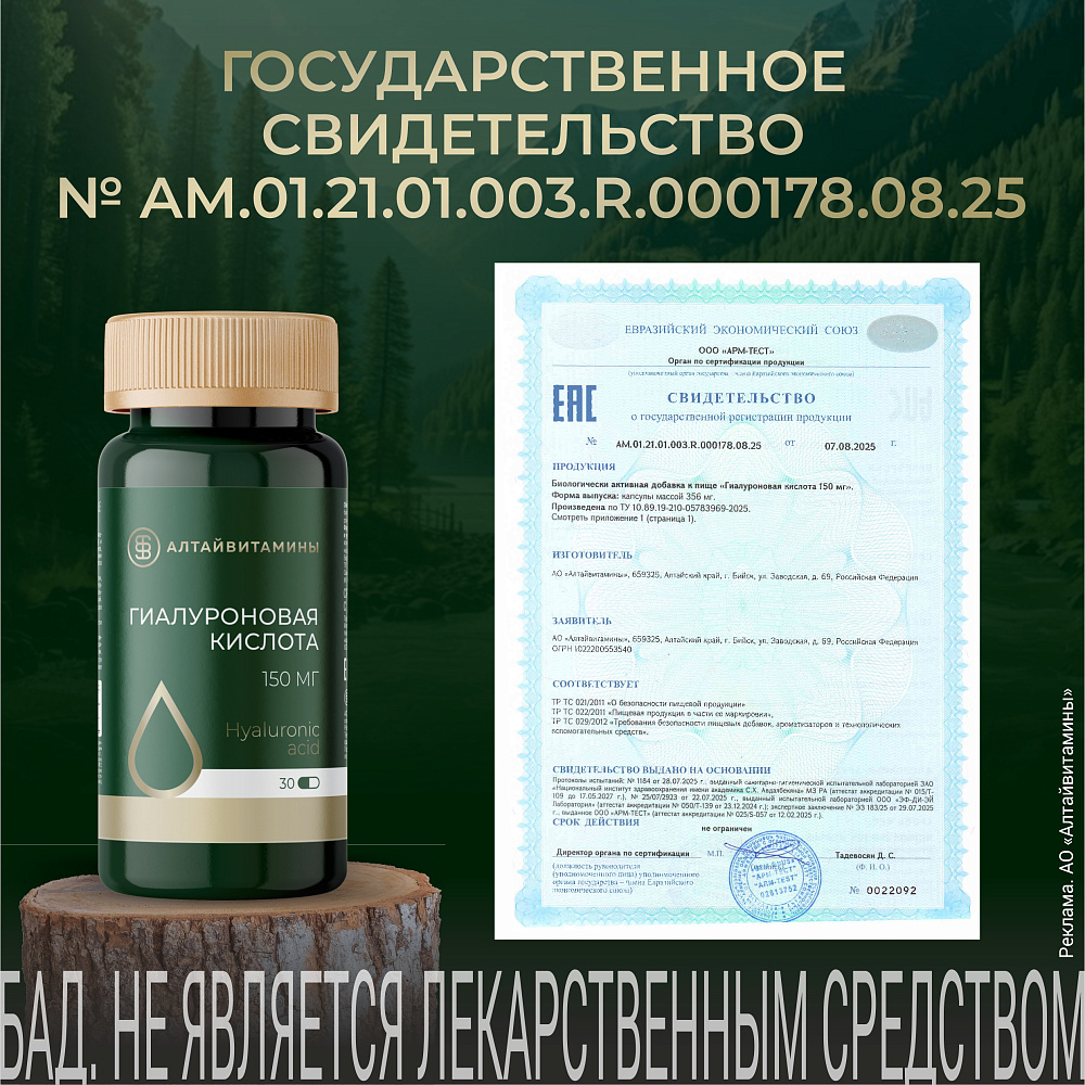 Биологически активная добавка к пище – источник гиалуроновой кислоты, дополнительный источник витамина С.